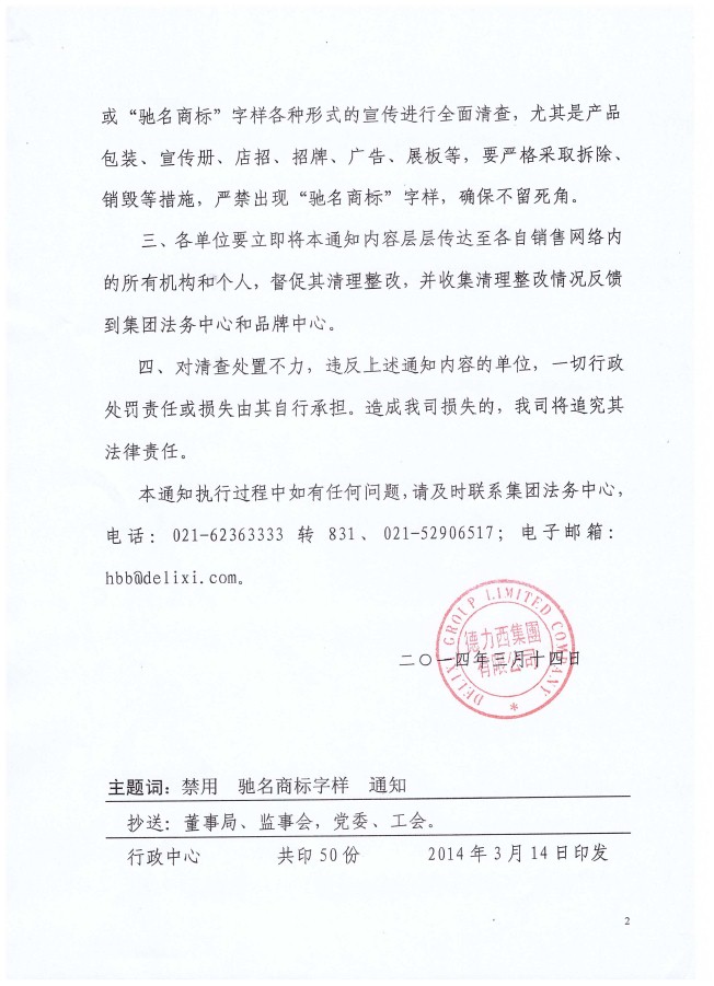 關于立即停止使用“馳名商標”字樣的緊急通知